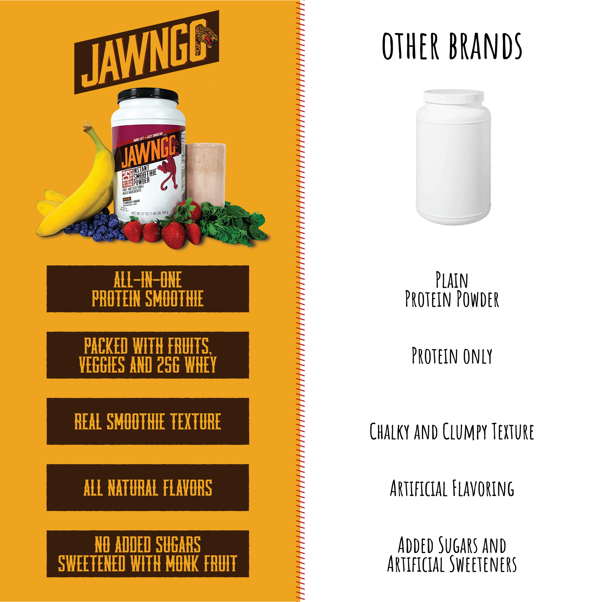 Jawngo smoothies are naturally sweetened with Monk Fruit. Not the high fructose stuff that makes you crash in a couple of hours.
